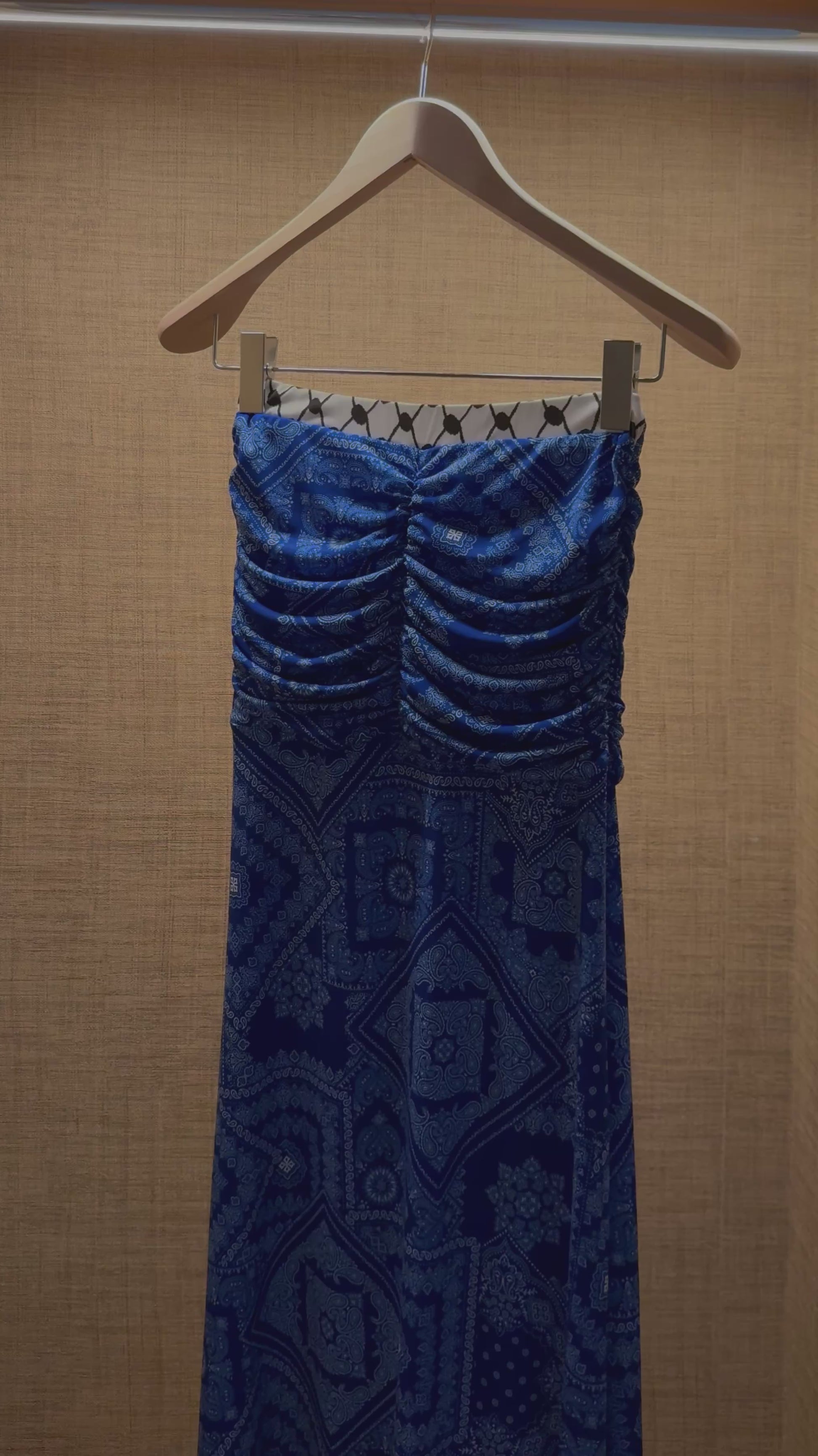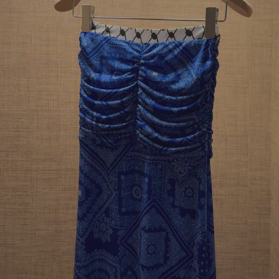 “Keffiyeh” maxi dress with blue-electric lahouri pattern , open-back and butt-lifting effect